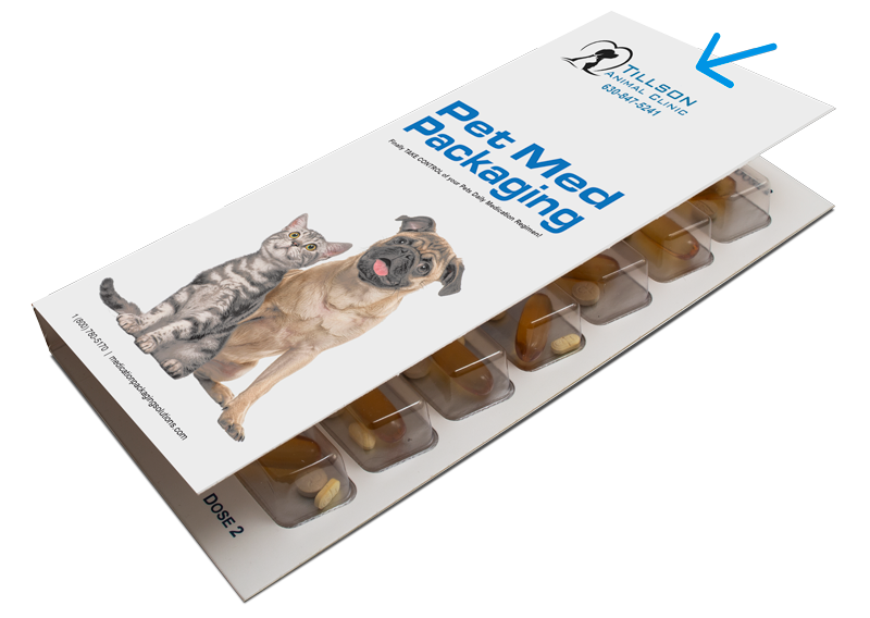 These are the same US made medication blister cards that pharmacies have been using for decades to help their human patients to take the right medication, the right dose at the right time. By offering these blisters cards for your pet patients you’ll be sure that your prescribed medication and supplement regimen will be followed. By presenting your customers with a simple and convenient way to take care of their pet you’ll be able to add an up charge to your customers bill or use this for branding your clinic, (add your logo to the cover of the card) your customer will appreciate your commitment to their pets good health.