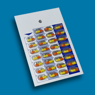 No heat sealer needed, this 31 Day, One Piece Cold Seal Single Dose Blister Card is perfect for packaging single dose medications for long-term care, assisted-living, and correctional facilities. This is a one piece card where the blister is built into the card.