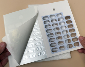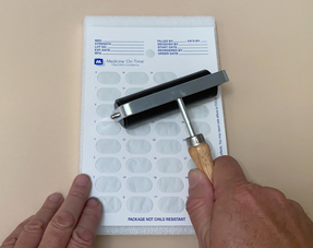 Fold the sealing surface to cover the filled blister. Apply even pressure to seal the medication package, (a hand roller is recommended).