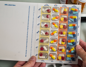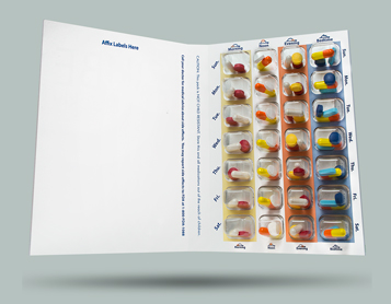 A two part (separate card and blister) multi-med card that is easy to assemble and use. This 7 day card is broken into morning, noon, evening and bedtime.