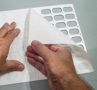Remove the pressure sensitive liner from the card to reveal the sealing surface.