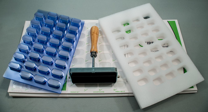 Fold the sealing surface over to cover the filled blisters and use the roller with even pressure to seal.
