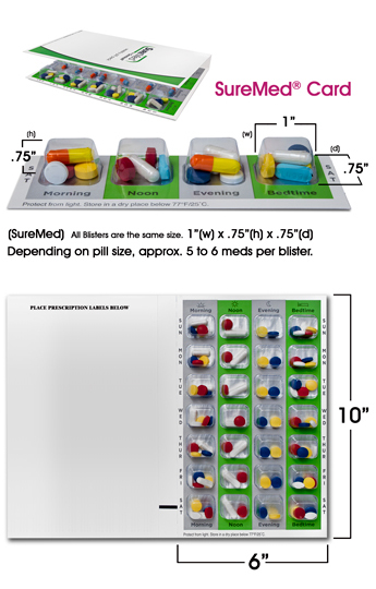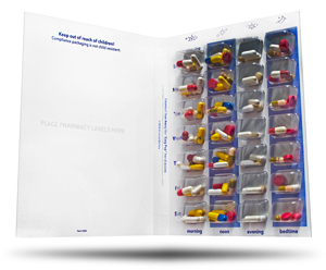 Using this medication packaging solution can drastically improve the life of the patient and provide peace-of-mind for their loved ones or caregivers. This medication packaging is used by consumers and pharmacies around the world because of its simplicity, versatility and effectiveness.